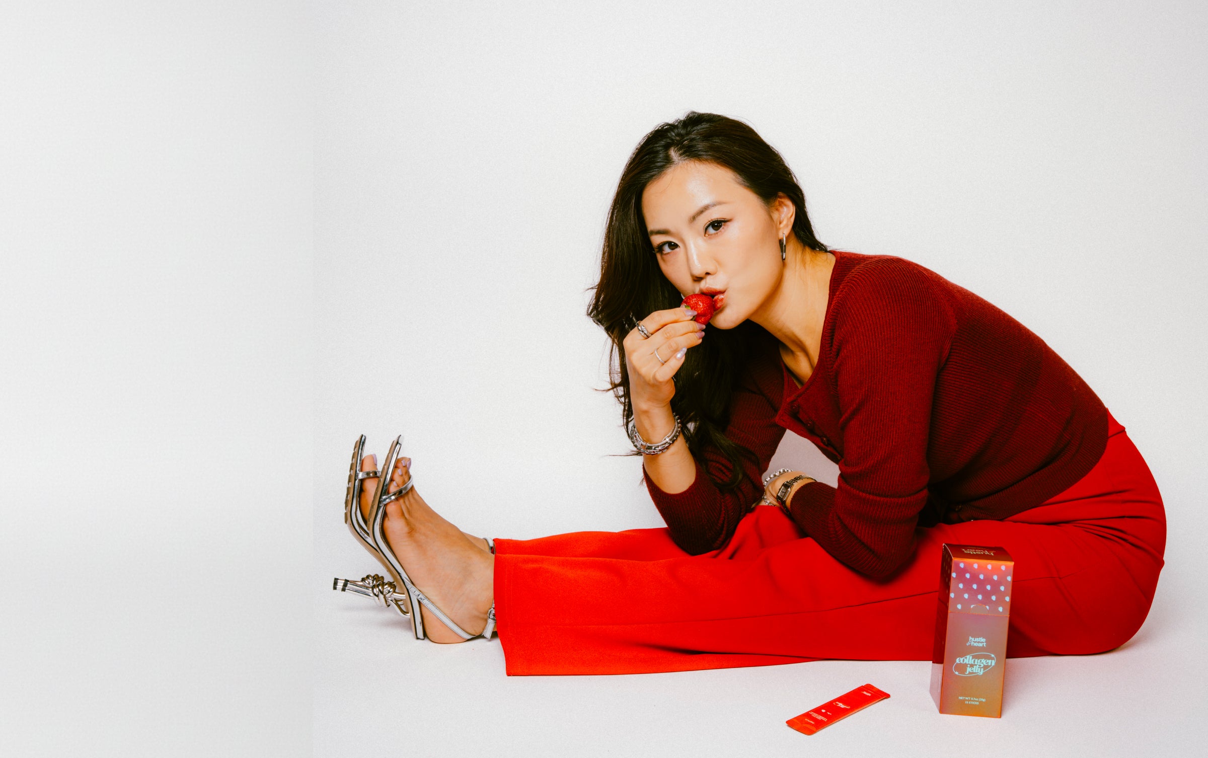 Plant-based collagen jelly with strawberries and hibiscus designed to support skin and daily vitality.